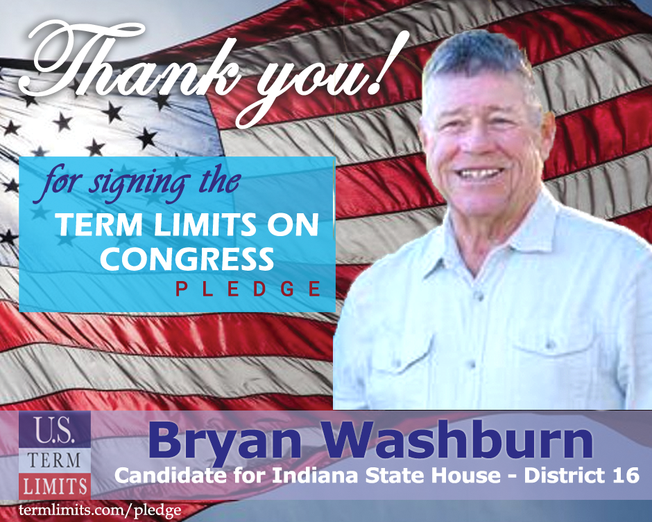 Rensselaer, IN – U.S. Term Limits (USTL), the leader in the national, non-partisan movement to limit terms for elected officials, is gathering support from state lawmakers across the nation. Its mission is to get 34 states to apply for an amendment proposal convention specific to term limits on Congress. Indiana state house candidate, Bryan Washburn (district 16) has committed support for term limits on Congress by signing the Term Limits Convention pledge. Washburn is the first signer in this race.