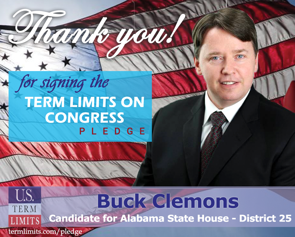 Huntsville, AL – U.S. Term Limits (USTL), the leader in the national, non-partisan movement to limit terms for elected officials, is gathering support from state lawmakers across the nation. Its mission is to get 34 states to apply for an amendment proposal convention specific to term limits on Congress. Alabama state house candidate, Buck Clemons (district 25), has committed support for term limits on Congress by signing the U.S. Term Limits pledge.
