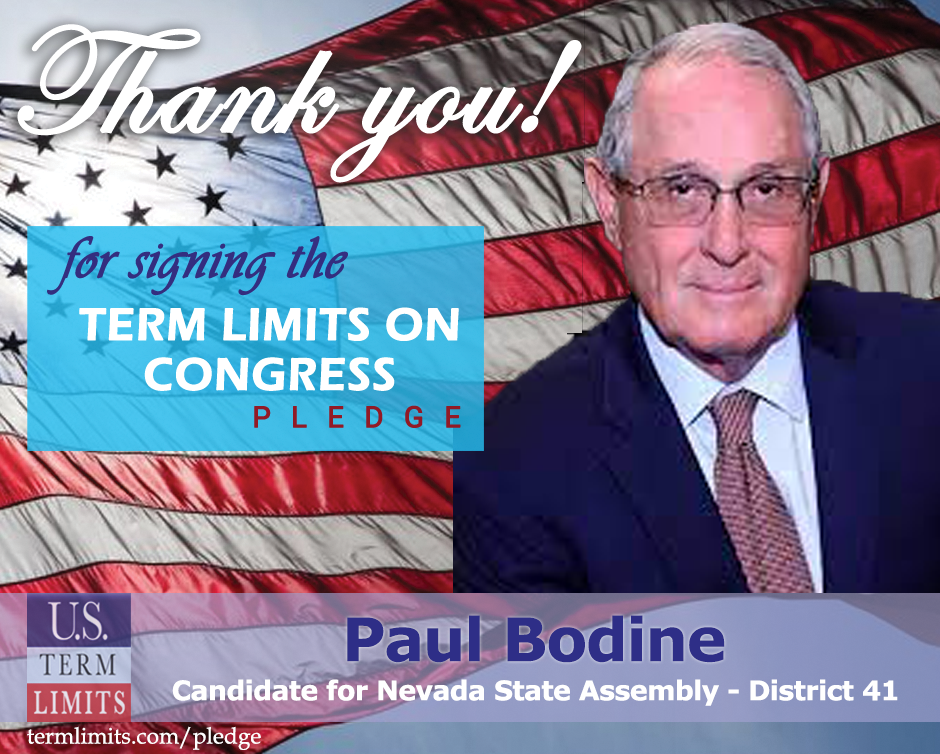 The U.S. Term Limits pledge is provided to candidates and members of state legislatures. It reads, “I pledge that, as a member of the state legislature, I will cosponsor, vote for, and defend the resolution applying for an Article V convention for the limited purpose of enacting term limits on Congress.”