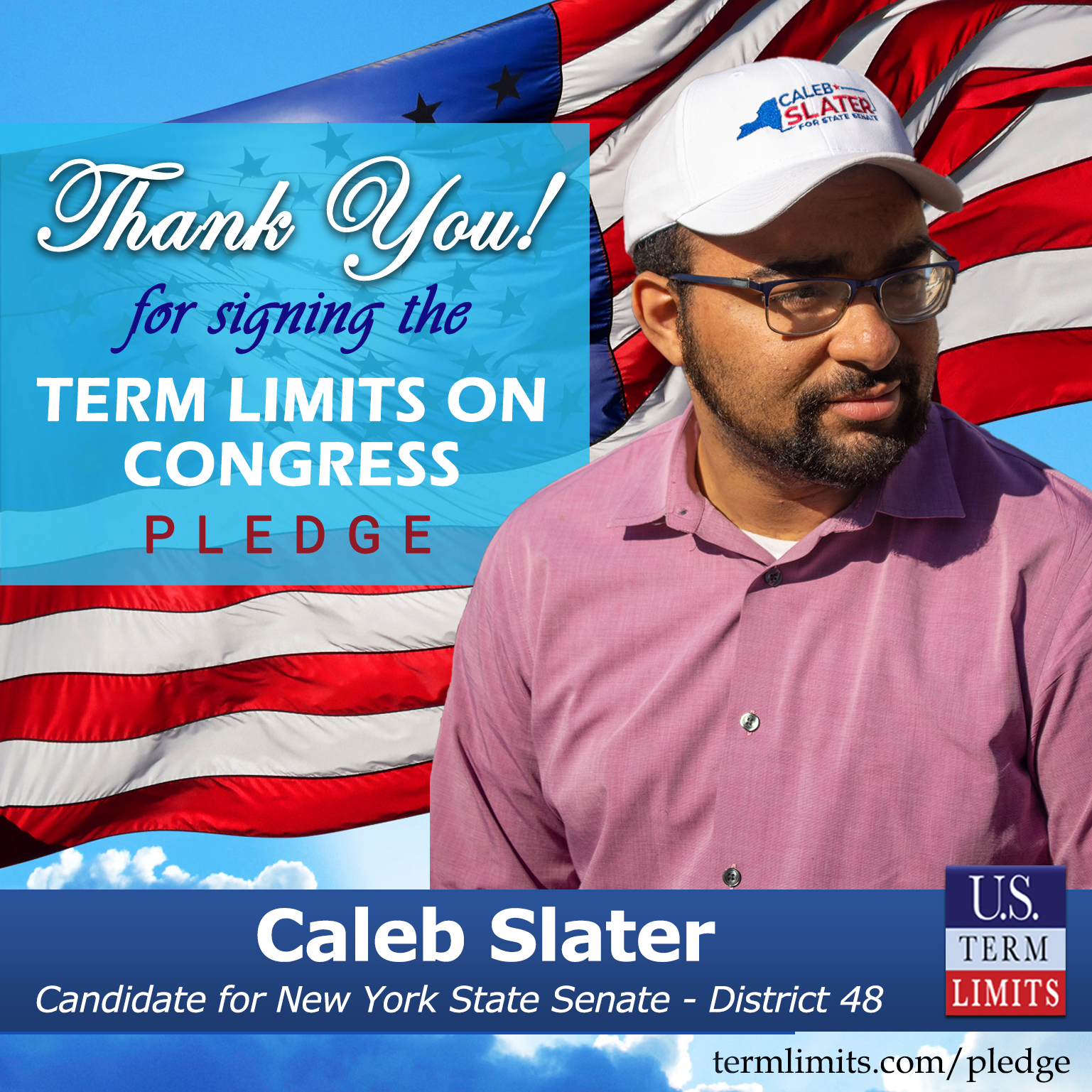 Syracuse, NY – U.S. Term Limits (USTL), the leader in the national, non-partisan movement to limit terms for elected officials, is gathering support from state lawmakers across the nation. Its mission is to get 34 states to apply for an amendment proposal convention specific to term limits on Congress. New York state senate candidate, Caleb Slater (District 48), has committed support for term limits on Congress by signing the term limits convention pledge. Slater is the first signer in this race.