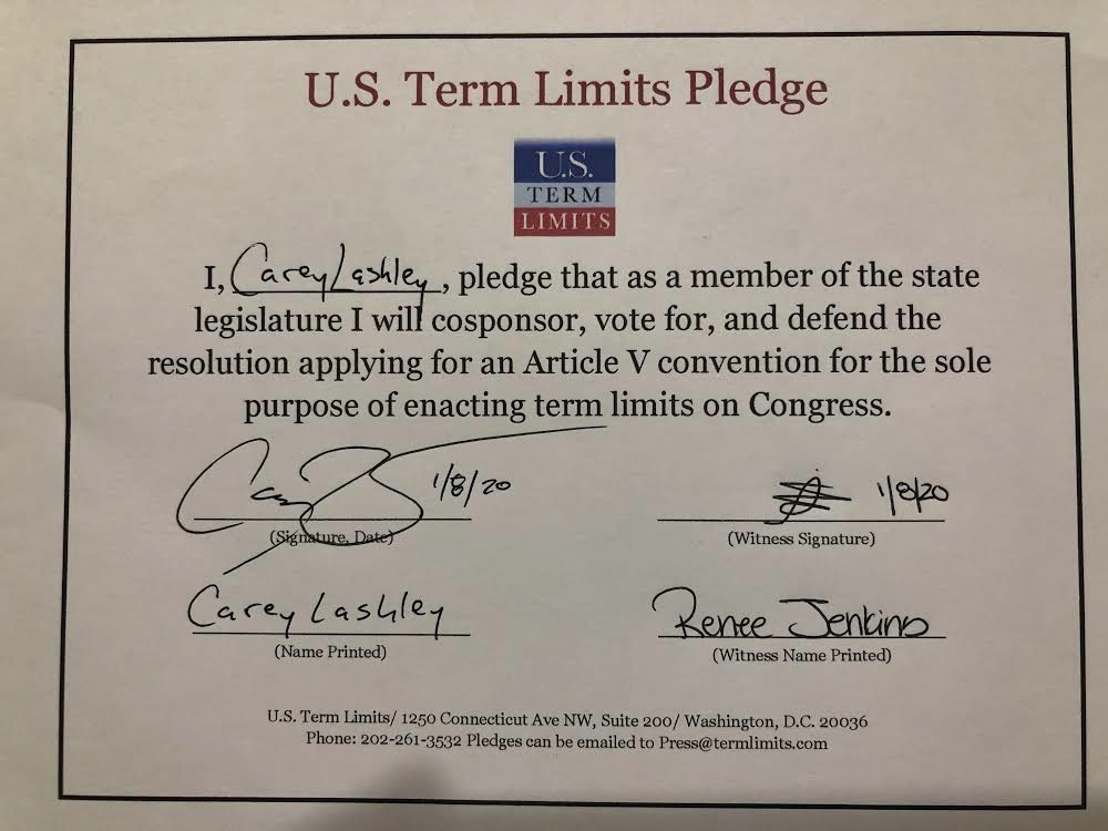 Washington, D.C. – U.S. Term Limits (USTL), the leader in the national, non-partisan movement to limit terms for elected officials, is gathering support from state lawmakers across the nation. Its mission is to get 34 states to apply for an amendment proposal convention specific to term limits on Congress. 2020 Texas state house candidate, Carey Lashley (district 131), has committed support for term limits on Congress by signing the Term Limits Convention pledge. Previously, candidate Elvonte Patton, also signed the pledge. The primary election is scheduled for March 3, 2020.