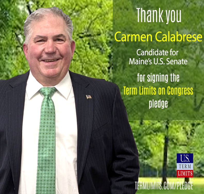 Washington D.C. – U.S. Term Limits (USTL), the leader in the non-partisan national movement to limit terms for elected officials, praises 2026 U.S. Senate candidate for Maine, Carmen Calabrese, for signing the pledge for an amendment to term limit Congress. Calabrese is running against incumbent pledge breaker, U.S. Senator Susan Collins.