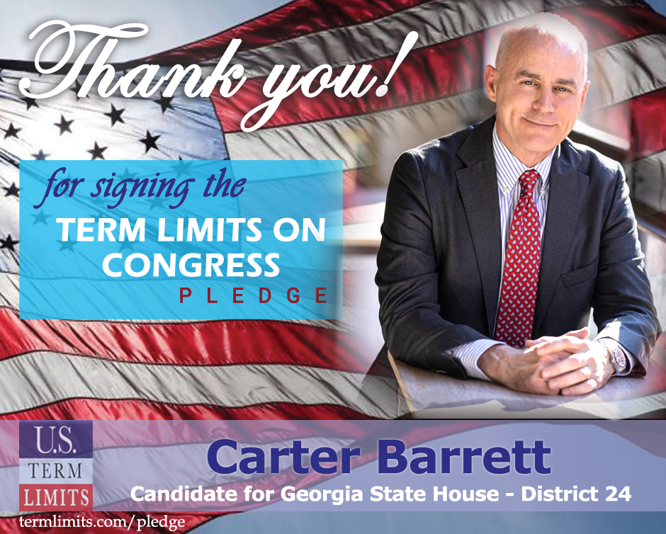 The U.S. Term Limits amendment pledge is provided to every announced candidate for federal office. It reads, “I pledge that as a member of Congress, I will cosponsor and vote for the U.S. Term Limits amendment of three (3) House terms and two (2) Senate terms and no longer limit.” The U.S. Term Limits constitutional amendment has been introduced in both the U.S. Senate by Senator Ted Cruz and his colleagues (SJR2) and the U.S. House by Representative Ralph Norman (HJR11).