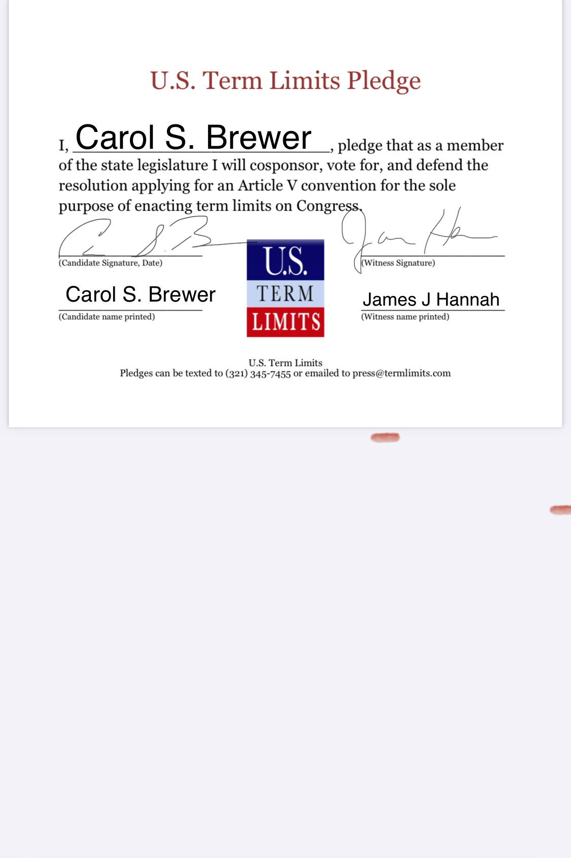 Carol Brewer Pledges to Support Congressional Term Limits