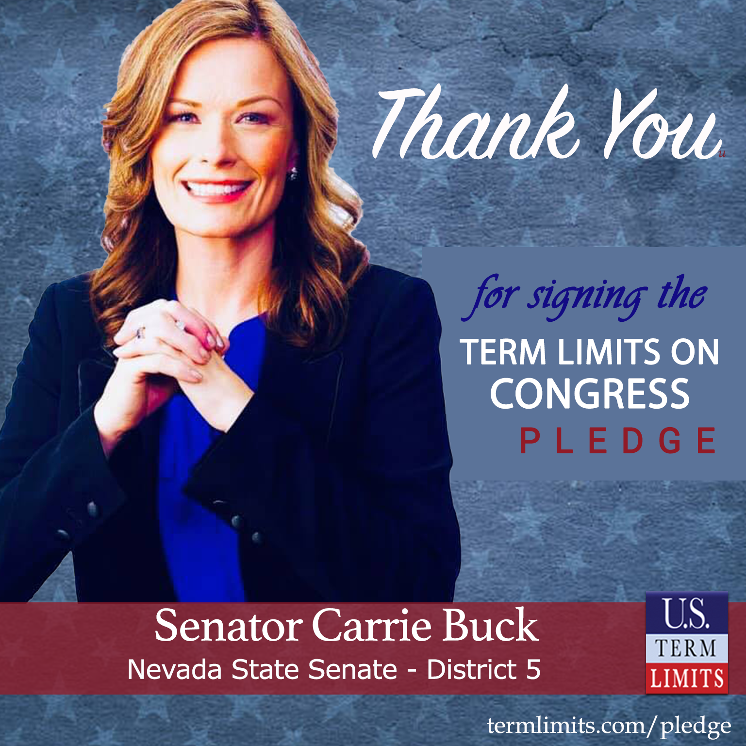 Henderson, NV– U.S. Term Limits (USTL), the leader in the national, non-partisan movement to limit terms for elected officials, is gathering support from state lawmakers across the nation. Its mission is to get 34 states to apply for an amendment proposal convention specific to term limits on Congress. Nevada state Senator Carrie Buck (District 5), has committed support for term limits on Congress by signing the term limits convention pledge.