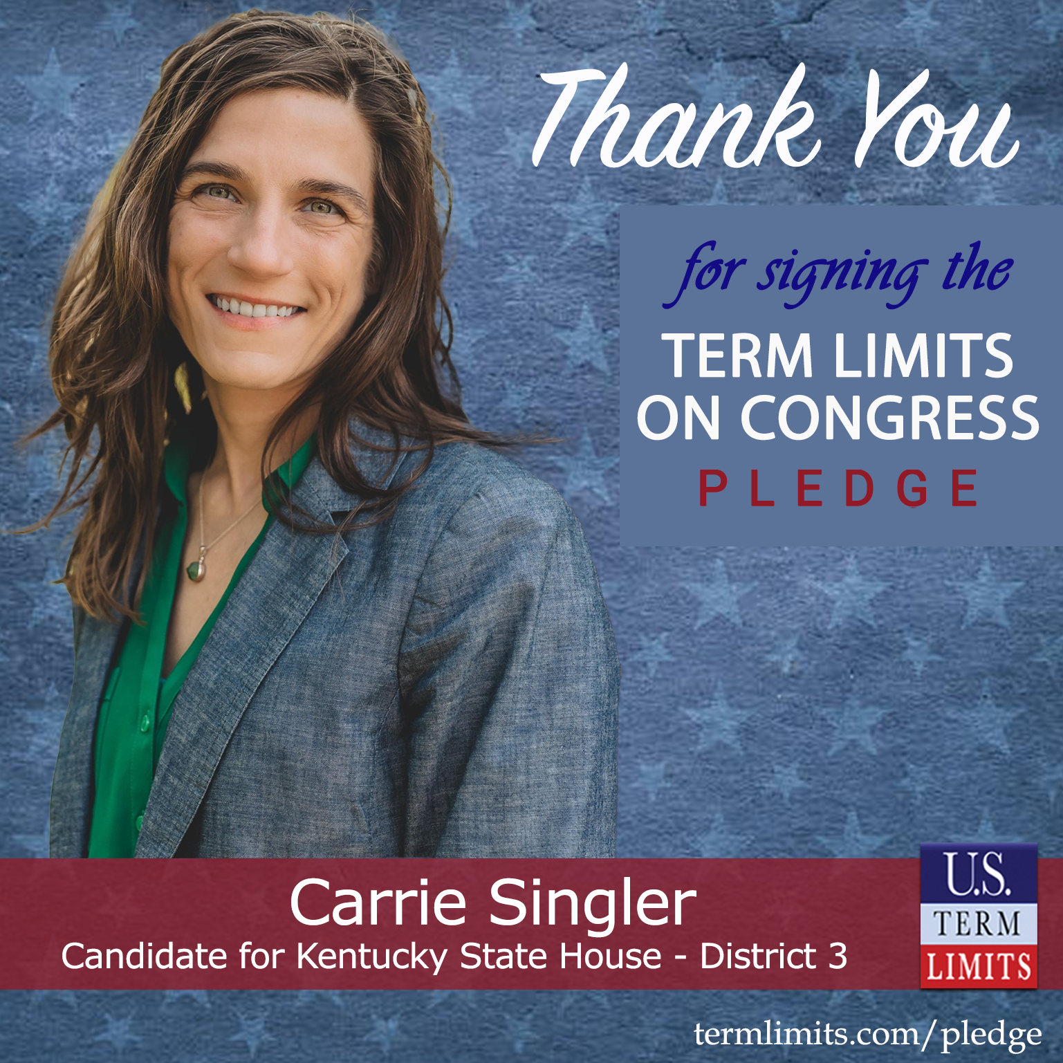 Paducah, KY – U.S. Term Limits (USTL), the leader in the national, non-partisan movement to limit terms for elected officials, is gathering support from state lawmakers across the nation. Its mission is to get 34 states to apply for an amendment proposal convention specific to term limits on Congress. Kentucky state house candidate, Carrie Singler (district 3), has committed support for term limits on Congress by signing the term limits convention pledge.