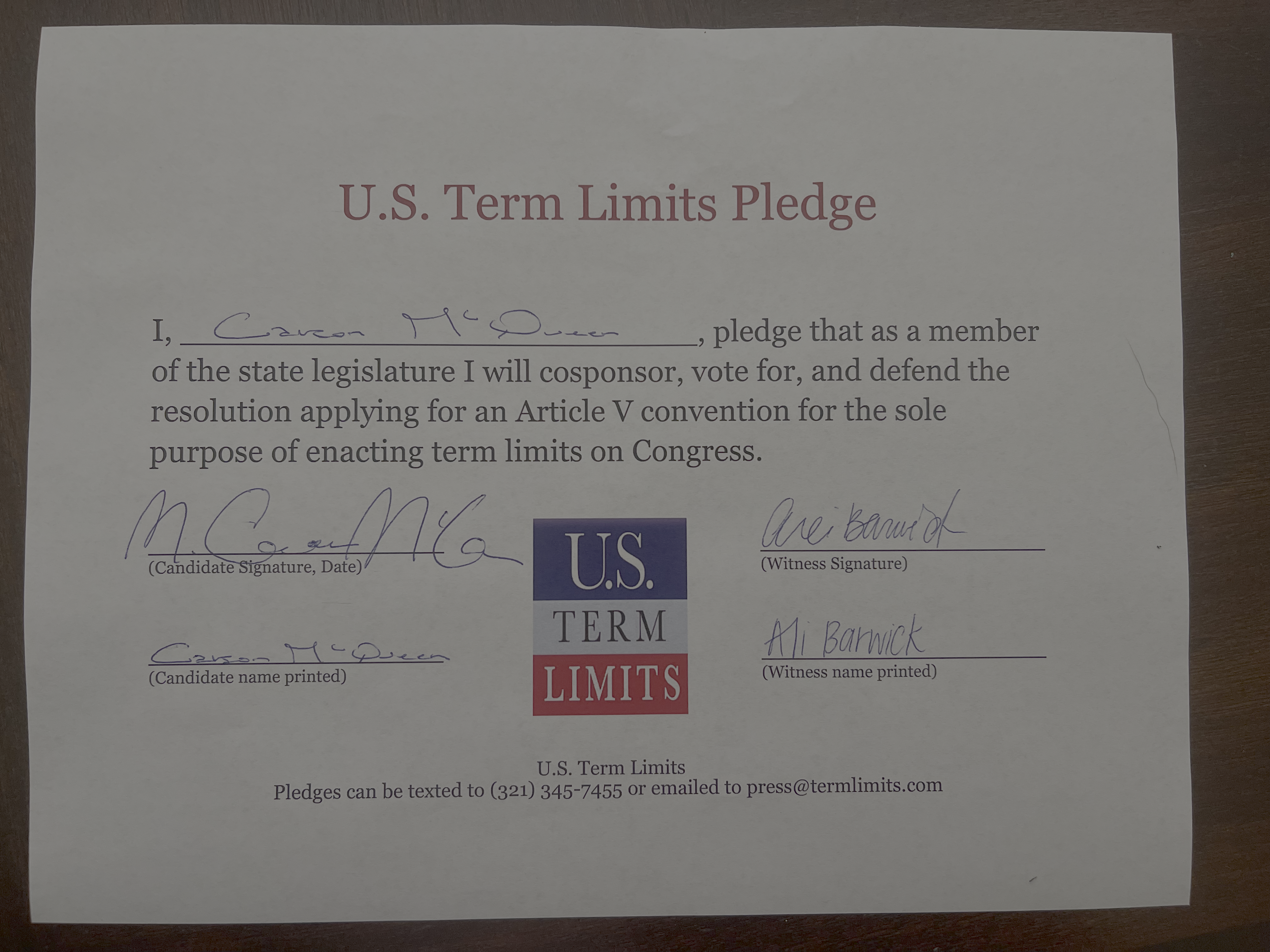 Atlanta, GA – U.S. Term Limits (USTL), the leader in the national, non-partisan movement to limit terms for elected officials, is gathering support from state lawmakers across the nation. Its mission is to get 34 states to apply for an amendment proposal convention specific to term limits on Congress. 2026 Georgia state senate candidate, Carson McQueen (district 14), has committed support for term limits on Congress by signing the term limits convention pledge.
