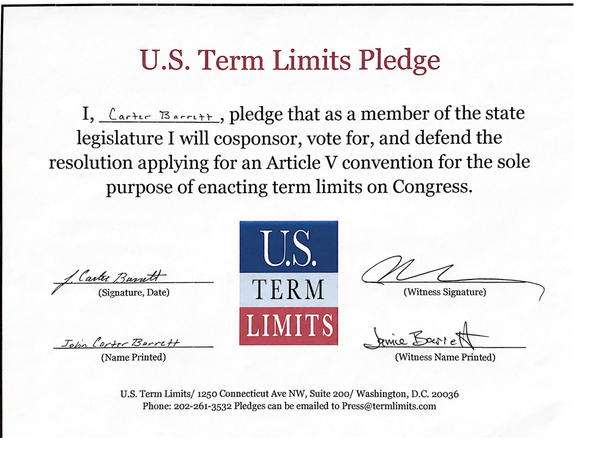 Carter Barrett Pledges to Support Congressional Term Limits