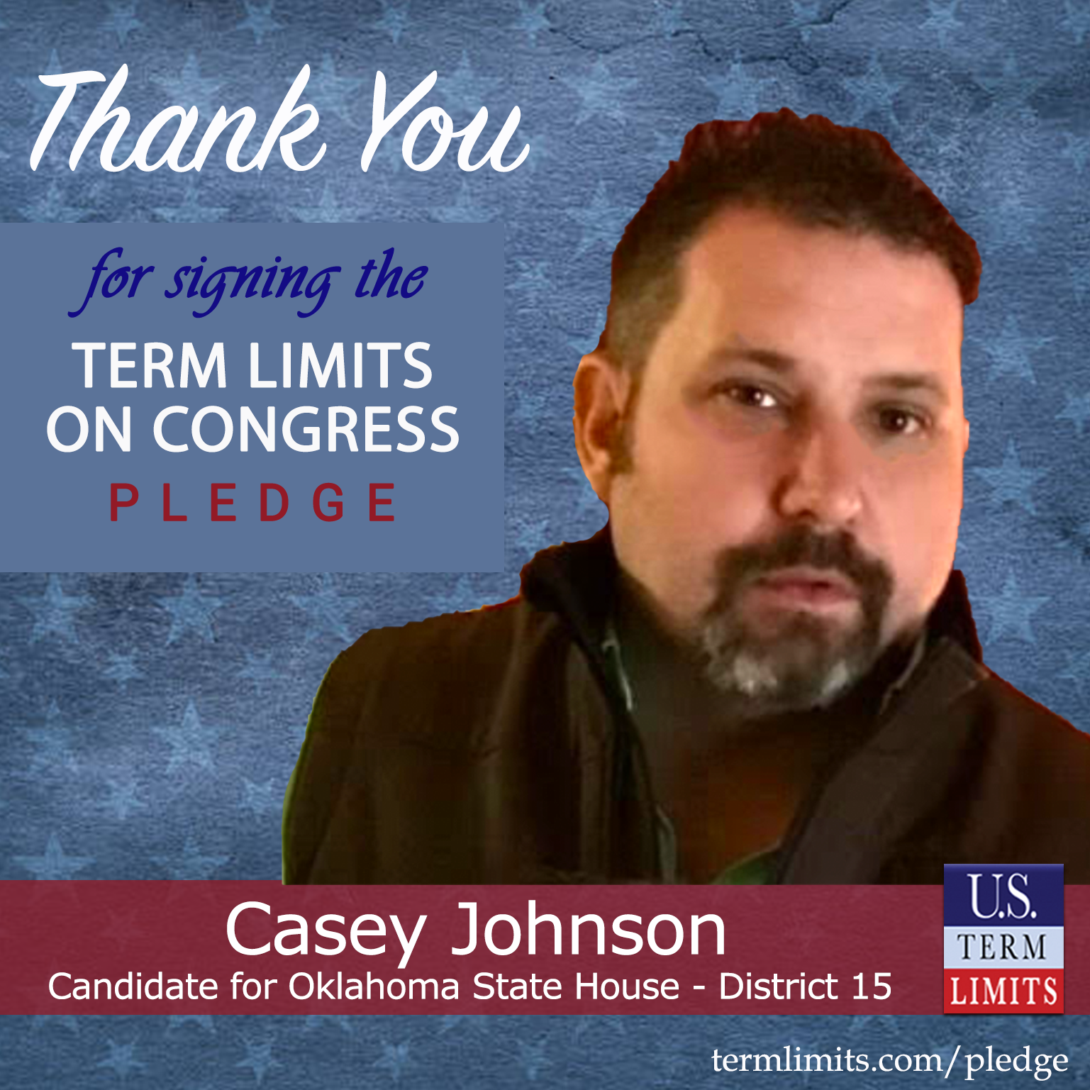 Stigler, OK– U.S. Term Limits (USTL), the leader in the national, non-partisan movement to limit terms for elected officials, is gathering support from state lawmakers across the nation. Its mission is to get 34 states to apply for an amendment proposal convention specific to term limits on Congress. Oklahoma state house candidate, Casey Johnson (District 15), has committed support for term limits on Congress by signing the term limits convention pledge. Previously, candidates Spring Morrow, Tim Turner and Paul Palmer also signed the pledge.