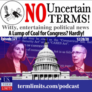 Due to the holidays, this week’s 20 min podcast is a repeat of episode 114 for those who may have missed it, which explains how Term Limits WON the 2020 elections… [BEGIN TRANSCRIPT] Philip Blumel: A Lump of Coal for Congress? Hardly! [music] Philip Blumel: Hi, I’m Philip Blumel. Welcome to No Uncertain Terms, the