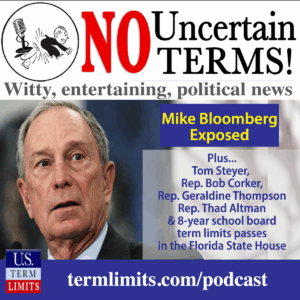 Philip Blumel: Talk about Uncertain Terms. Today we’re discussing Michael Bloomberg. Hi, I’m Philip Blumel. Welcome to No Uncertain Terms, the official podcast of the Term Limits Movement for the week of February 24th, 2020. Stacey Selleck: Your sanctuary from partisan politics. Philip Blumel: Oh, and Happy Term Limits Day, February 27th, this Thursday. Philip
