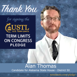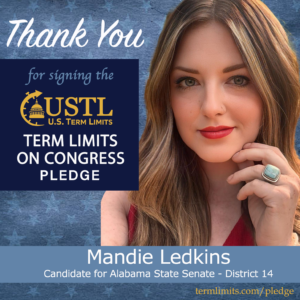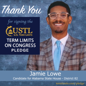 For immediate release March 31, 2026 Contact: Scott Tillman, U.S. Term LimitsPhone: (321) 345-7455stillman@termlimits.com Jamie Lowe Pledges to Support Congressional Term Limits Tuskegee, AL – U.S. Term Limits (USTL), the leader in the national, non-partisan movement to limit terms for elected officials, is gathering support from state lawmakers across the nation. Its mission is to