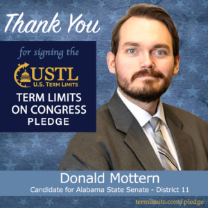 For immediate release March 23, 2026 Contact: Scott Tillman, U.S. Term LimitsPhone: (321) 345-7455stillman@termlimits.com Donald Mottern Pledges to Support Congressional Term Limits Pell City, AL – U.S. Term Limits (USTL), the leader in the national, non-partisan movement to limit terms for elected officials, is gathering support from state lawmakers across the nation. Its mission is