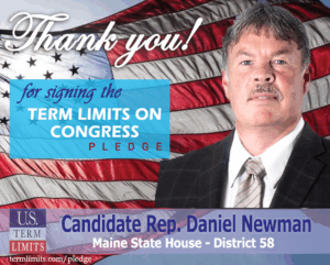 For immediate release May 19, 2022 Contact: Scott Tillman, U.S. Term Limits Phone: (321) 345-7455 stillman@termlimits.com Jay Finegan Pledges to Support Congressional Term Limits Bangor, ME – U.S. Term Limits (USTL), the leader in the national, non-partisan movement to limit terms for elected officials, is gathering support from state lawmakers across the nation. Its mission