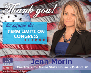 For immediate release March 20, 2022 Contact: Scott Tillman, U.S. Term Limits Phone: (321) 345-7455 stillman@termlimits.com Jenn Morin Pledges to Support Congressional Term Limits Augusta, ME – U.S. Term Limits (USTL), the leader in the national, non-partisan movement to limit terms for elected officials, is gathering support from state lawmakers across the nation. Its mission