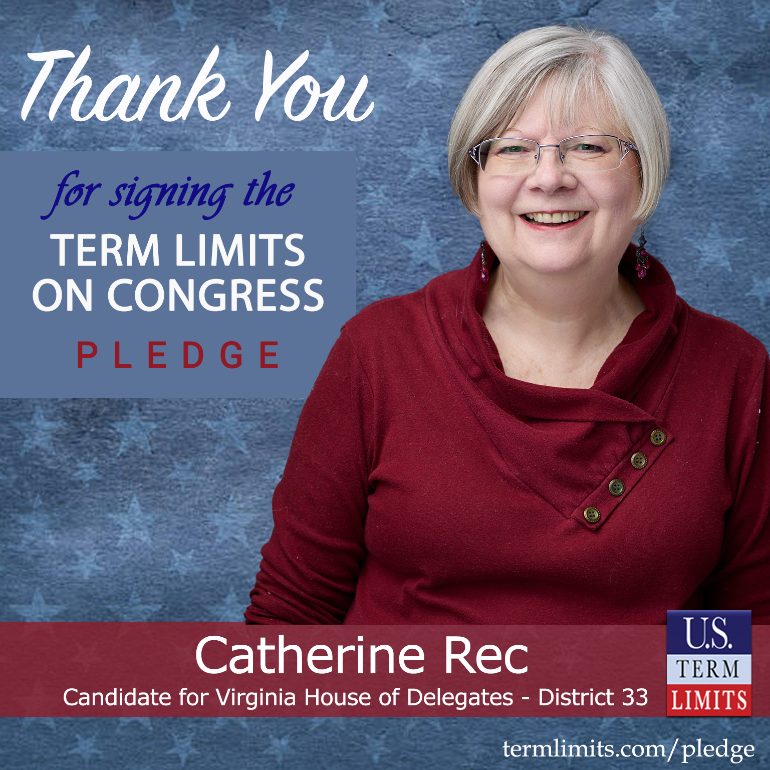 Woodstock, VA – U.S. Term Limits (USTL), the leader in the national, non-partisan movement to limit terms for elected officials, is gathering support from state lawmakers across the nation. Its mission is to get 34 states to apply for an amendment proposal convention specific to term limits on Congress. 2025 Virginia state house of delegates candidate, Catherine Rec (district 33), has committed support for term limits on Congress by signing the term limits convention pledge. Rec is the first signer in this race.
