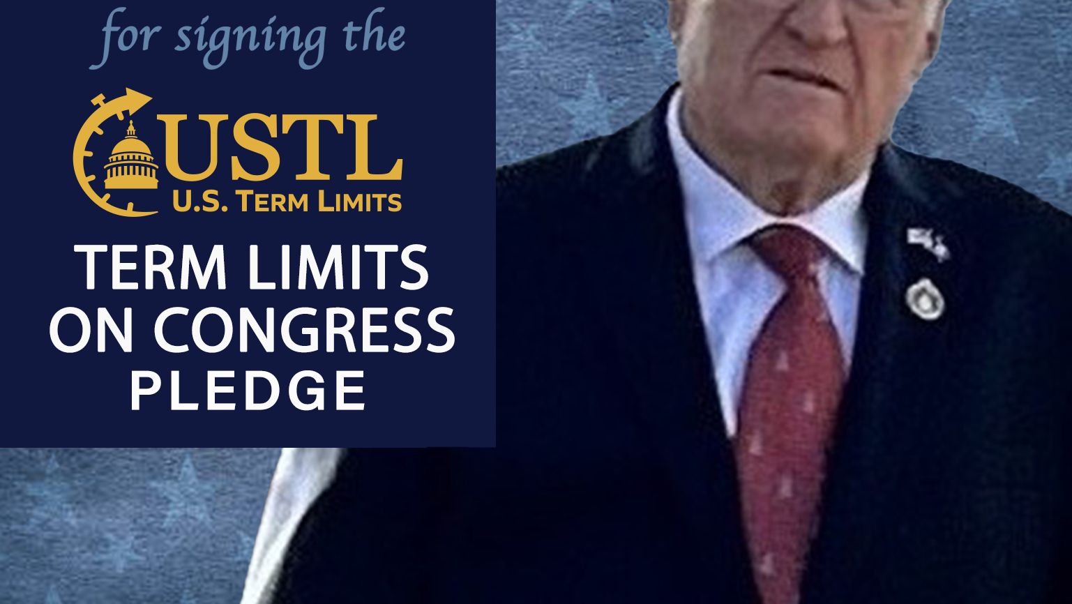 The U.S. Term Limits pledge is provided to candidates and members of state legislatures. It reads, “I pledge that, as a member of the state legislature, I will cosponsor, vote for, and defend the resolution applying for an Article V convention for the limited purpose of enacting term limits on Congress.”