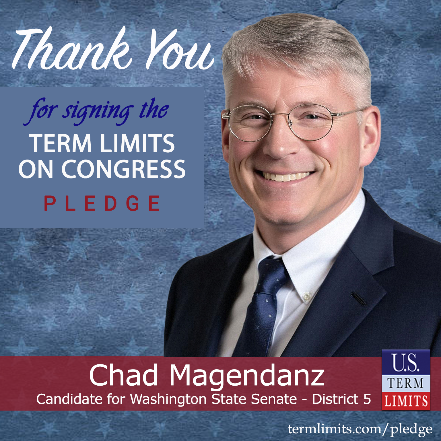Maple Valley, WA – U.S. Term Limits (USTL), the leader in the national, non-partisan movement to limit terms for elected officials, is gathering support from state lawmakers across the nation. Its mission is to get 34 states to apply for an amendment proposal convention specific to term limits on Congress. 2025 Washington state senate candidate, Chad Magendanz (district 5), has committed support for term limits on Congress by signing the term limits convention pledge. Mangendanz is the first signer in this race. The special primary election is scheduled for August 5, 2025.