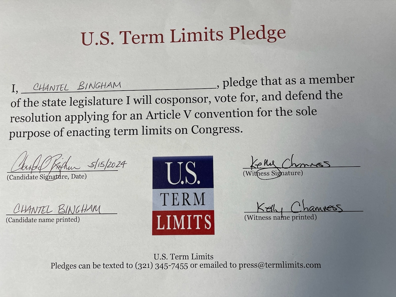 Chantel Bingham Pledges to Support Congressional Term Limits