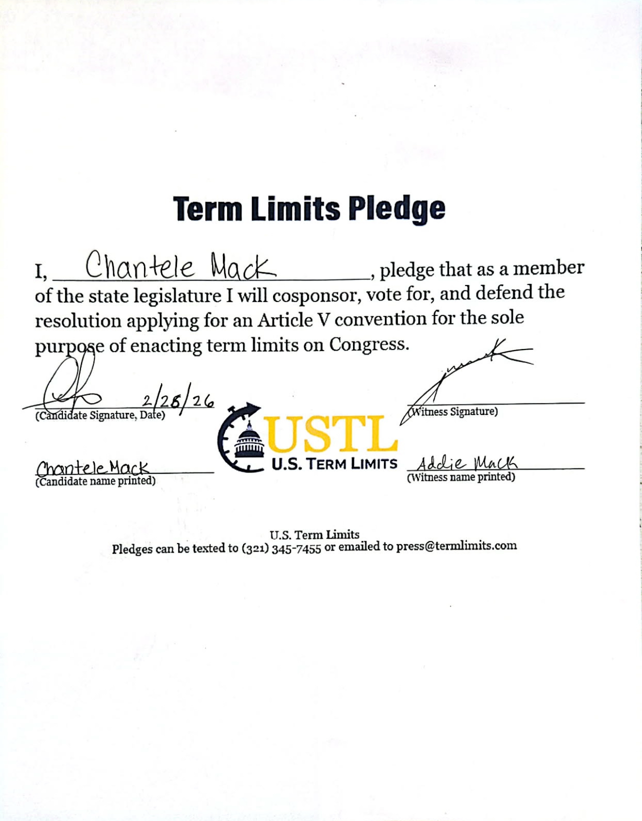 Chantele Mack Pledges to Support Congressional Term Limits