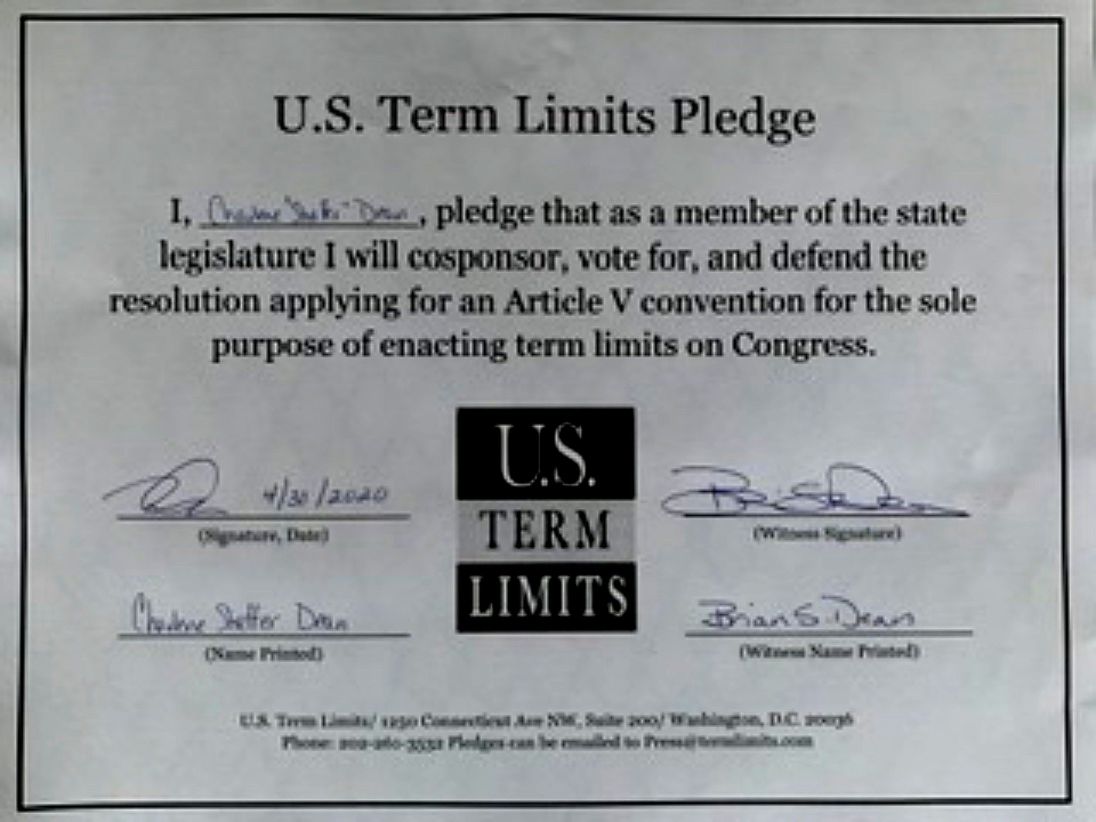 Washington, D.C. – U.S. Term Limits (USTL), the leader in the national, non-partisan movement to limit terms for elected officials, is gathering support from state lawmakers across the nation. Its mission is to get 34 states to apply for an amendment proposal convention specific to term limits on Congress. 2020 West Virginia house of delegates candidate, Charlene Dean (district 45), has committed support for term limits on Congress by signing the Term Limits Convention pledge. Previously, candidates Gary Connell and Carl Martin also signed the pledge. The primary is scheduled for June 9, 2020.
