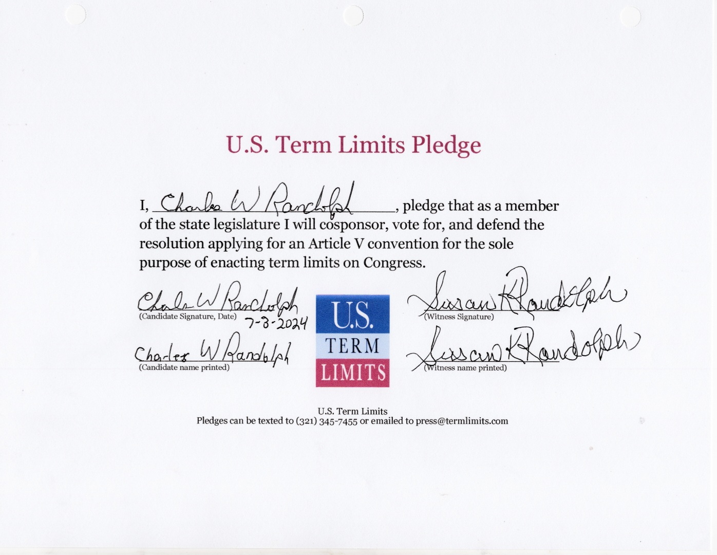 Charles Randolph Pledges to Support Congressional Term Limits