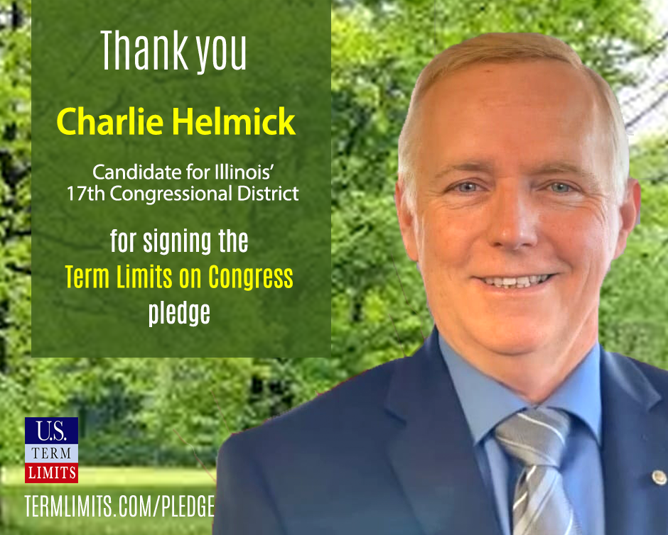 Washington D.C. – U.S. Term Limits (USTL), the leader in the non-partisan national movement to limit terms for elected officials, praises 2022 U.S. house candidate for Illinois, Charlie Helmick (district 17), for signing the pledge for an amendment to term limit Congress. Previously, candidates Eric Sorensen and Esther Joy King also signed the pledge.
