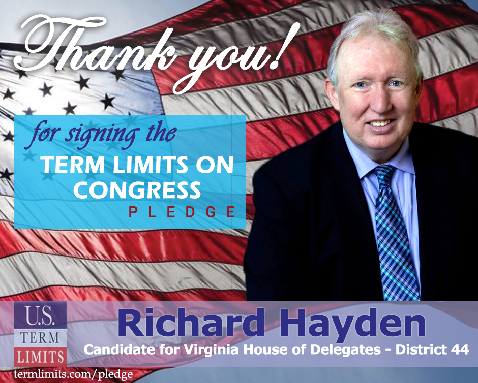 The U.S. Term Limits pledge is provided to candidates and members of state legislatures. It reads, “I pledge that, as a member of the state legislature, I will cosponsor, vote for, and defend the resolution applying for an Article V convention for the limited purpose of enacting term limits on Congress.”