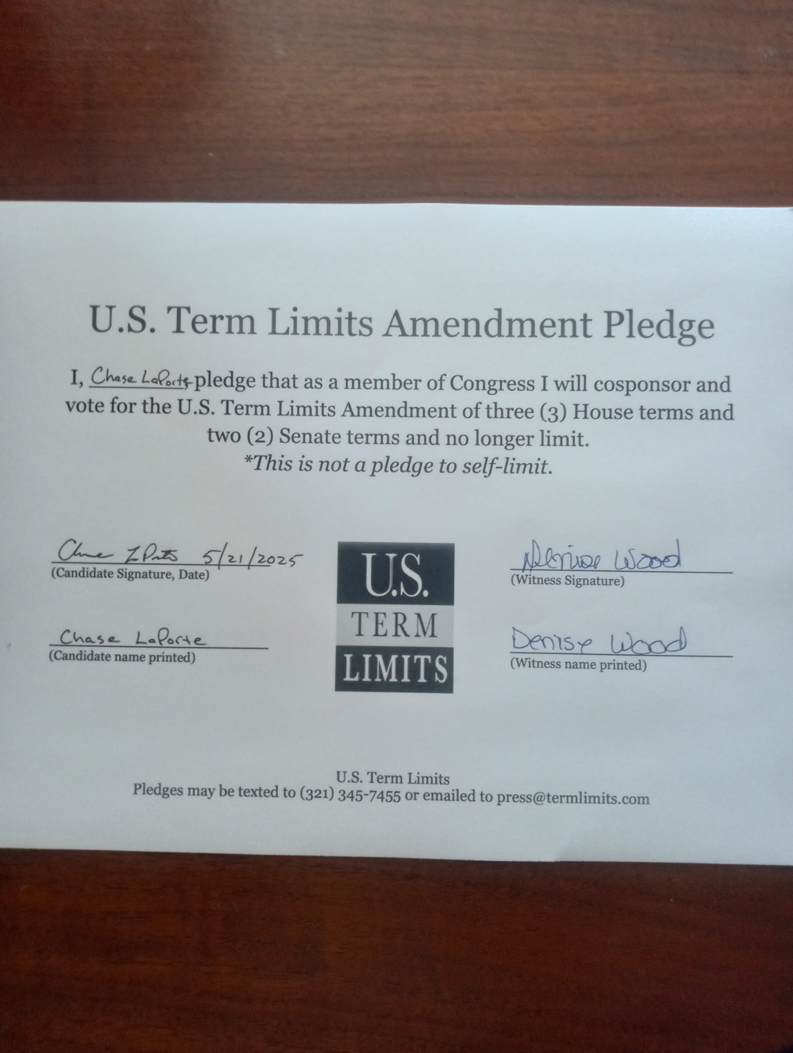 Chase LaPorte Pledges to Support Term Limits on Congress