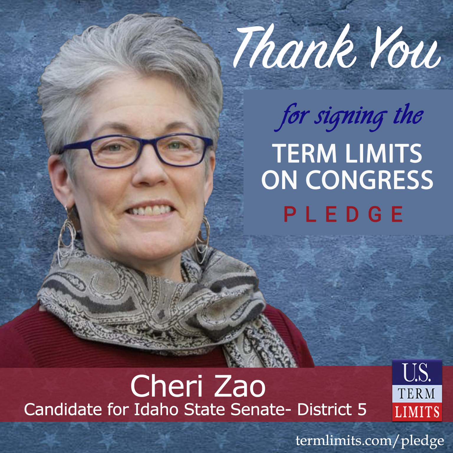 Coeur d’Alene, ID – U.S. Term Limits (USTL), the leader in the national, non-partisan movement to limit terms for elected officials, is gathering support from state lawmakers across the nation. Its mission is to get 34 states to apply for an amendment proposal convention specific to term limits on Congress. Idaho state senate candidate, Cheri Zao (District 5), has committed support for term limits on Congress by signing the term limits convention pledge. Zao is the first signer in this race.