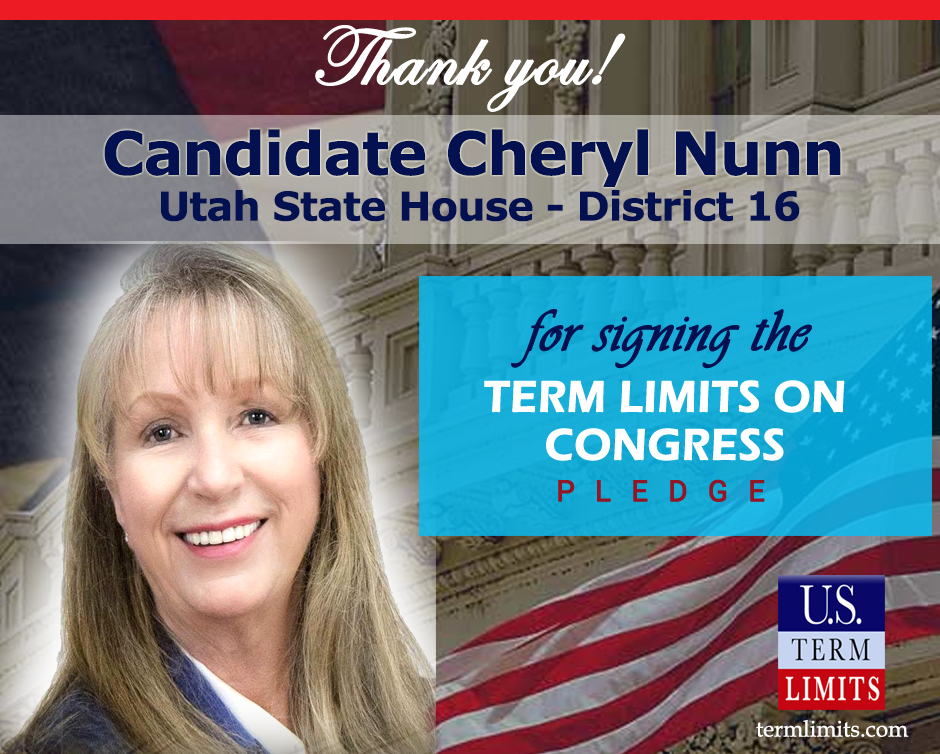 Washington, D.C. – U.S. Term Limits (USTL), the leader in the national, non-partisan movement to limit terms for elected officials, is gathering support from state lawmakers across the nation. Its mission is to get 34 states to apply for an amendment proposal convention specific to term limits on Congress. 2020 Utah state house candidate Cheryl Nunn (district 16), has committed support for term limits on Congress by signing the Term Limits Convention pledge. The primary election is scheduled for June 30, 2020.