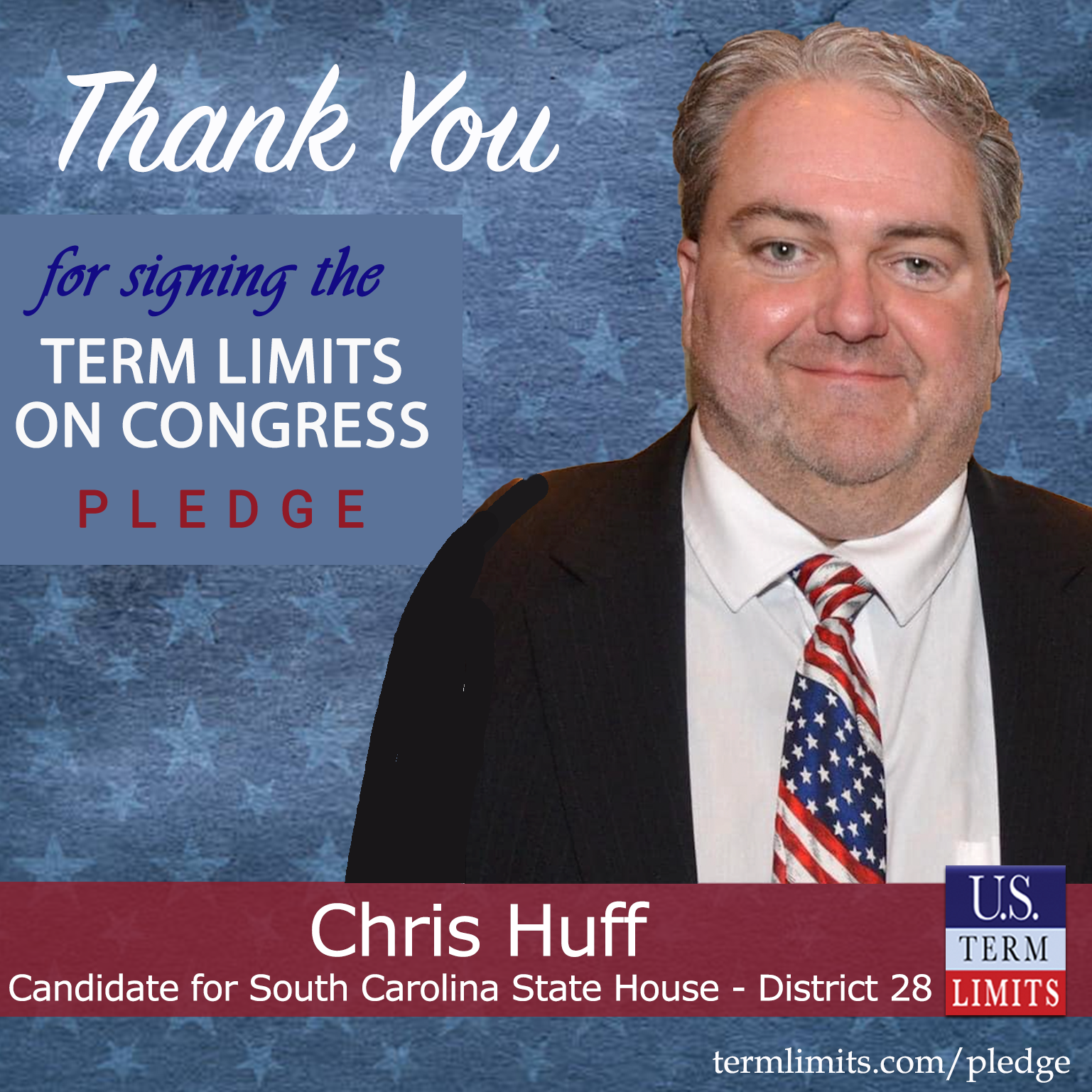 Woodville, SC – U.S. Term Limits (USTL), the leader in the national, non-partisan movement to limit terms for elected officials, is gathering support from state lawmakers across the nation. Its mission is to get 34 states to apply for an amendment proposal convention specific to term limits on Congress. South Carolina state house candidate, Chris Huff (District 28), has committed support for term limits on Congress by signing the term limits convention pledge. Huff is the first signer in this race.