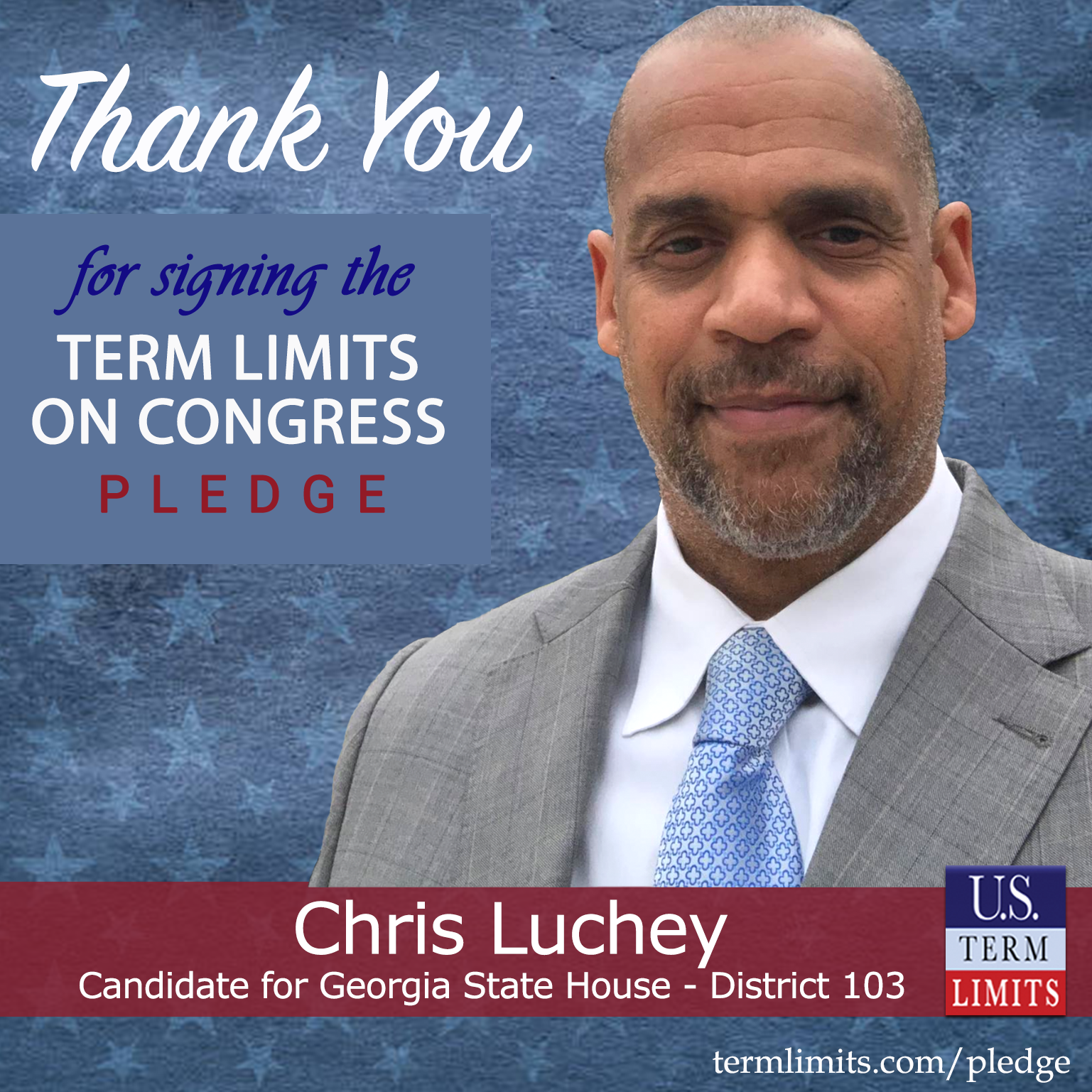 Sugar Hill, GA – U.S. Term Limits (USTL), the leader in the national, non-partisan movement to limit terms for elected officials, is gathering support from state lawmakers across the nation. Its mission is to get 34 states to apply for an amendment proposal convention specific to term limits on Congress. Georgia state house candidate, Chris Luchey (District 103), has committed support for term limits on Congress by signing the Term Limits Convention Pledge.