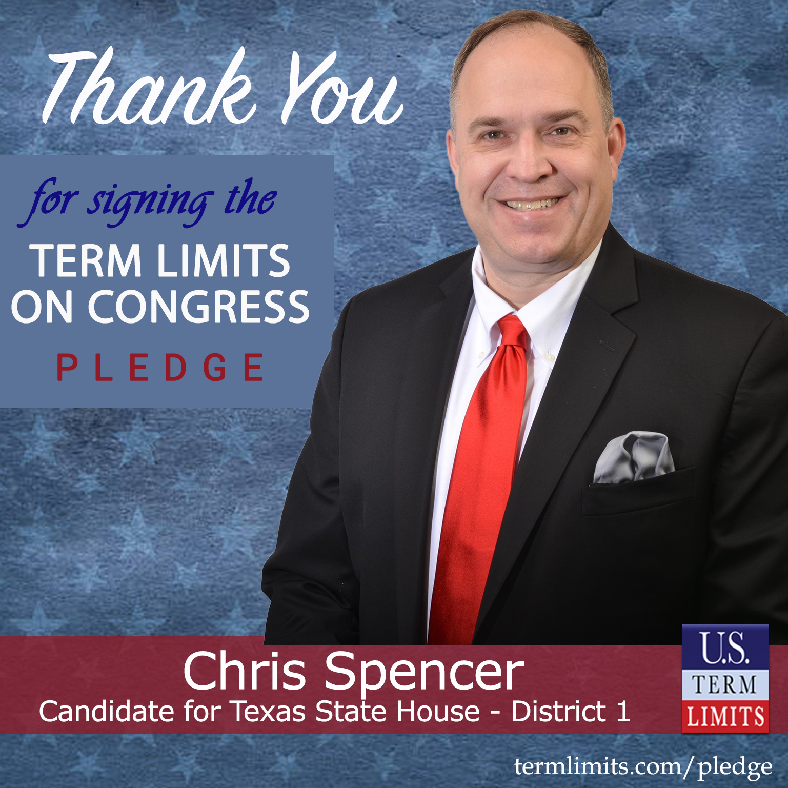 USTL President, Philip Blumel, commented on Spencer’s pledge saying, “Chris’s strong support of term limits shows that there are individuals who are willing to listen to the majority of voters who want term limits. America needs a Congress that will be served by citizen legislators, not career politicians.”