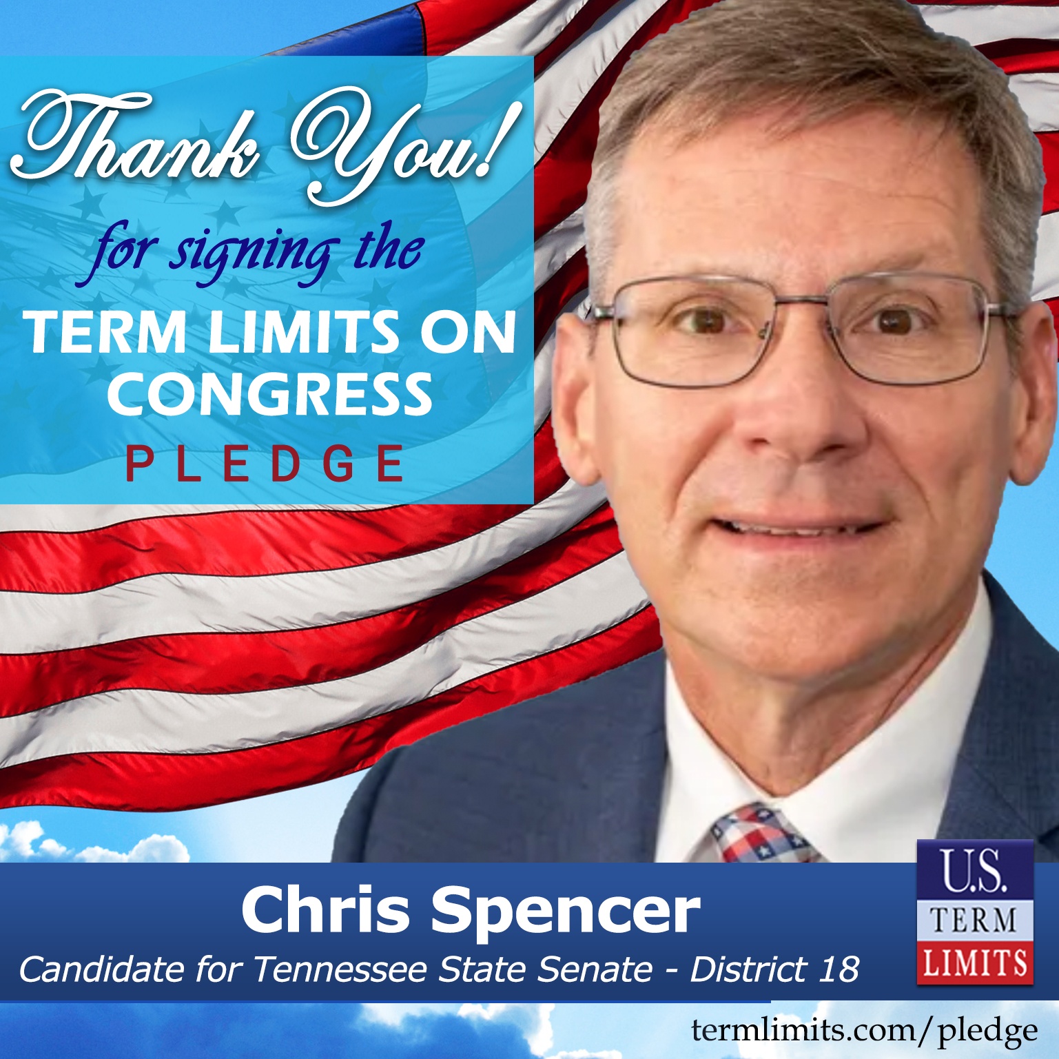 Gallatin, TN – U.S. Term Limits (USTL), the leader in the national, non-partisan movement to limit terms for elected officials, is gathering support from state lawmakers across the nation. Its mission is to get 34 states to apply for an amendment proposal convention specific to term limits on Congress. Tennessee state senate candidate, Chris Spencer (District 18), has committed support for term limits on Congress by signing the term limits convention pledge. Spencer is the first signer in this race.