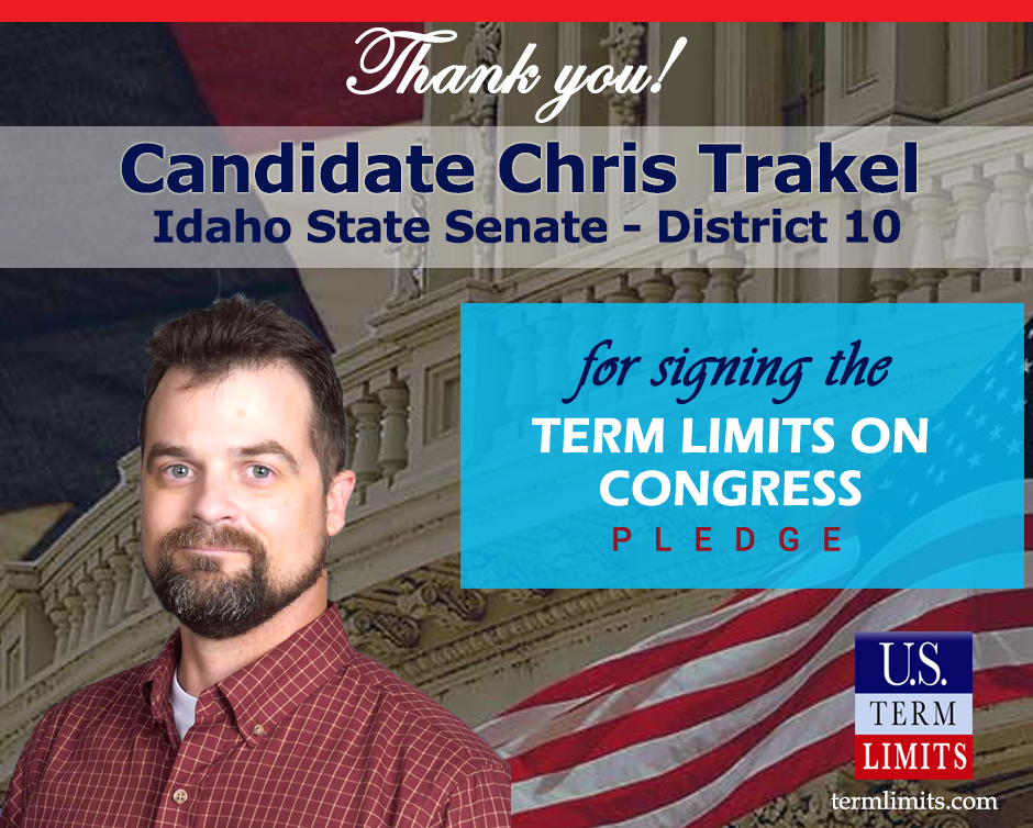 Washington, D.C. – U.S. Term Limits (USTL), the leader in the national, non-partisan movement to limit terms for elected officials, is gathering support from state lawmakers across the nation. Its mission is to get 34 states to apply for an amendment proposal convention specific to term limits on Congress. 2020 Idaho senate candidate Chris Trakel (district 10), has committed support for term limits on Congress by signing the Term Limits Convention pledge. Trakel is the first signer is this race. The primary election is scheduled for May 19, 2020.