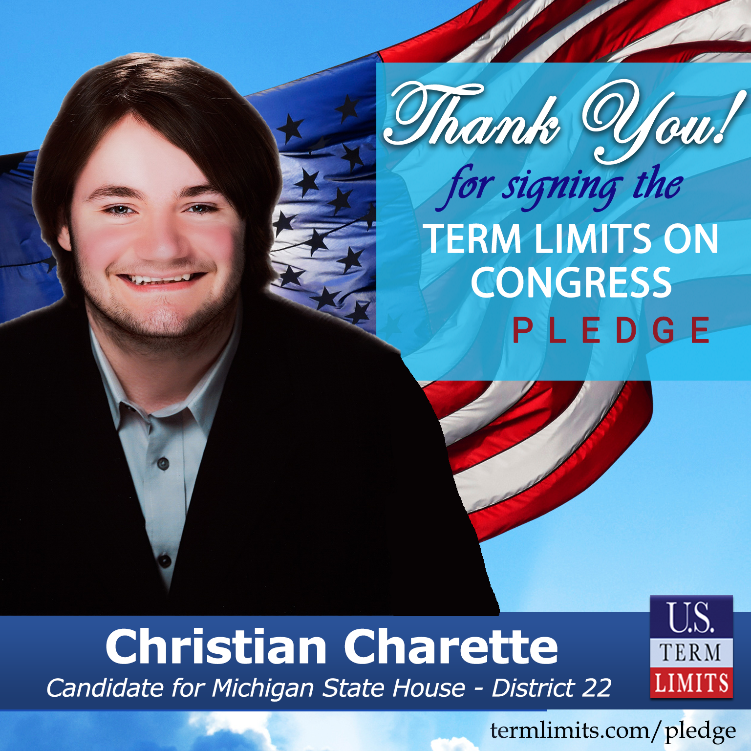 Plymouth, MI – U.S. Term Limits (USTL), the leader in the national, non-partisan movement to limit terms for elected officials, is gathering support from state lawmakers across the nation. Its mission is to get 34 states to apply for an amendment proposal convention specific to term limits on Congress. Michigan state house candidate, Christian Charette (District 22), has committed support for term limits on Congress by signing the term limits convention pledge. Charette is the first signer in this race.