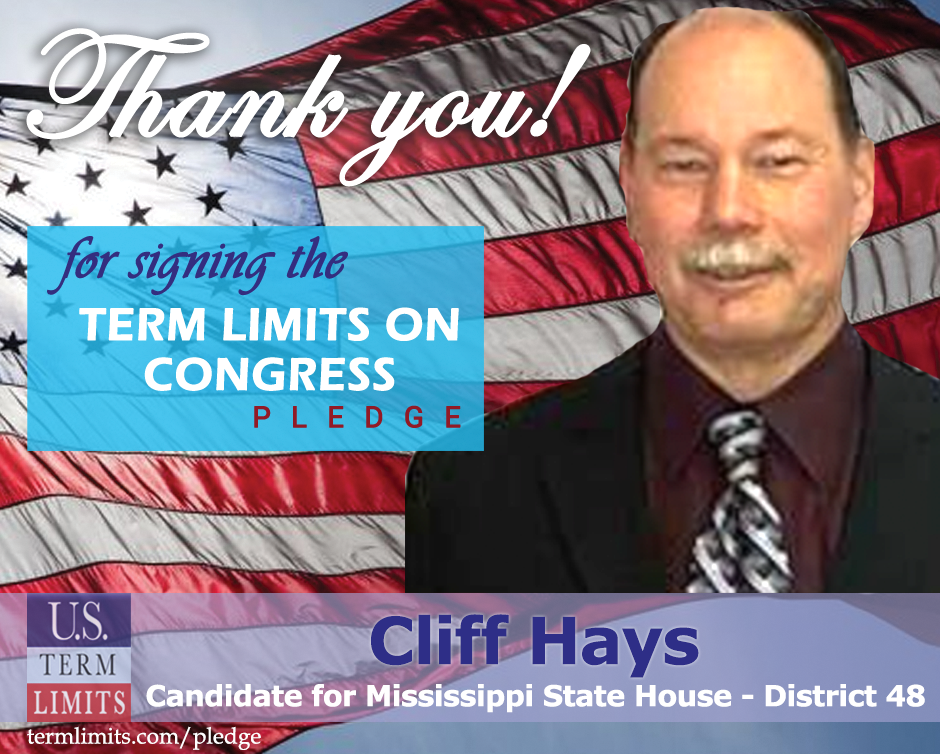 The U.S. Term Limits pledge is provided to candidates and members of state legislatures. It reads, “I pledge that, as a member of the state legislature, I will cosponsor, vote for, and defend the resolution applying for an Article V convention for the sole purpose of enacting term limits on Congress.”