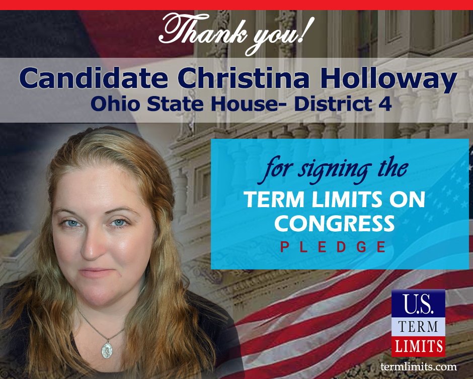 Washington, D.C. – U.S. Term Limits (USTL), the leader in the national, non-partisan movement to limit terms for elected officials, is gathering support from state lawmakers across the nation. Its mission is to get 34 states to apply for an amendment proposal convention specific to term limits on Congress. Ohio state house candidate, Christina Holloway (district 4) has committed support for term limits on Congress by signing the Term Limits Convention pledge. Holloway is the first signer in this race. The primary election is scheduled for March 17, 2020.