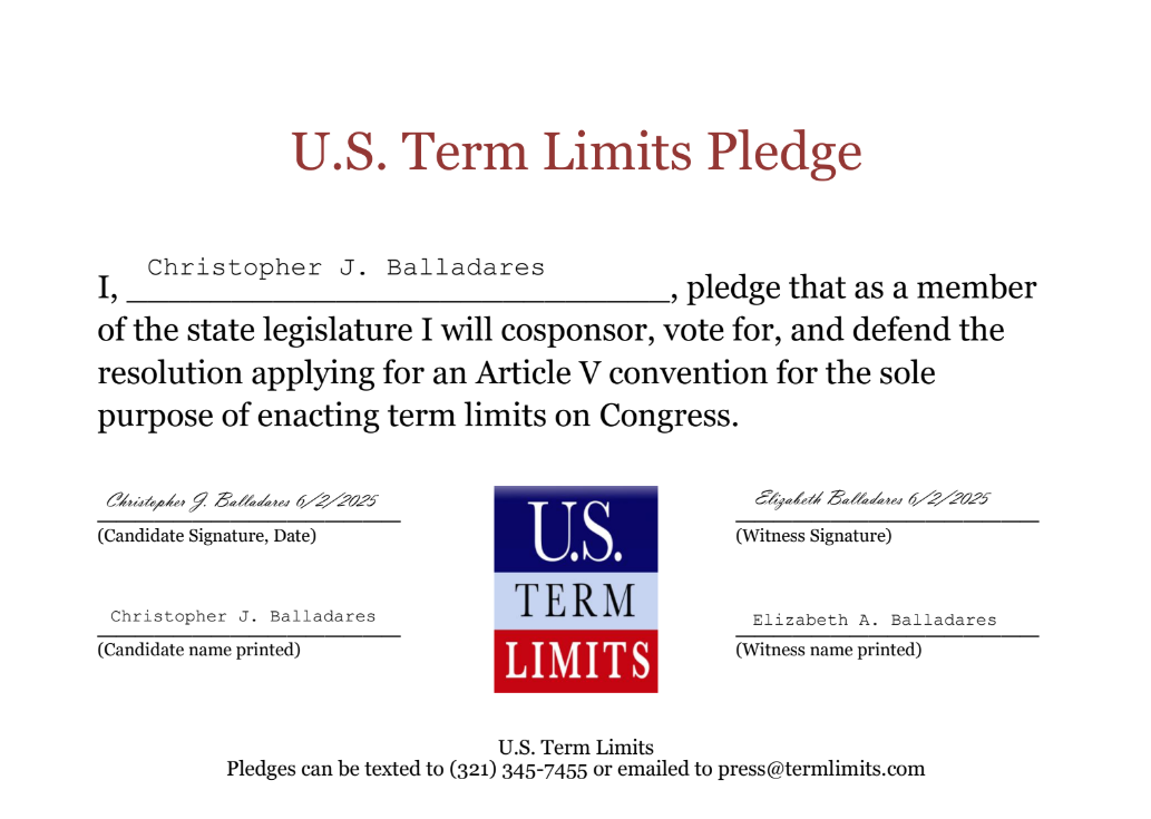 Christopher Balladares Pledges to Support Congressional Term Limits