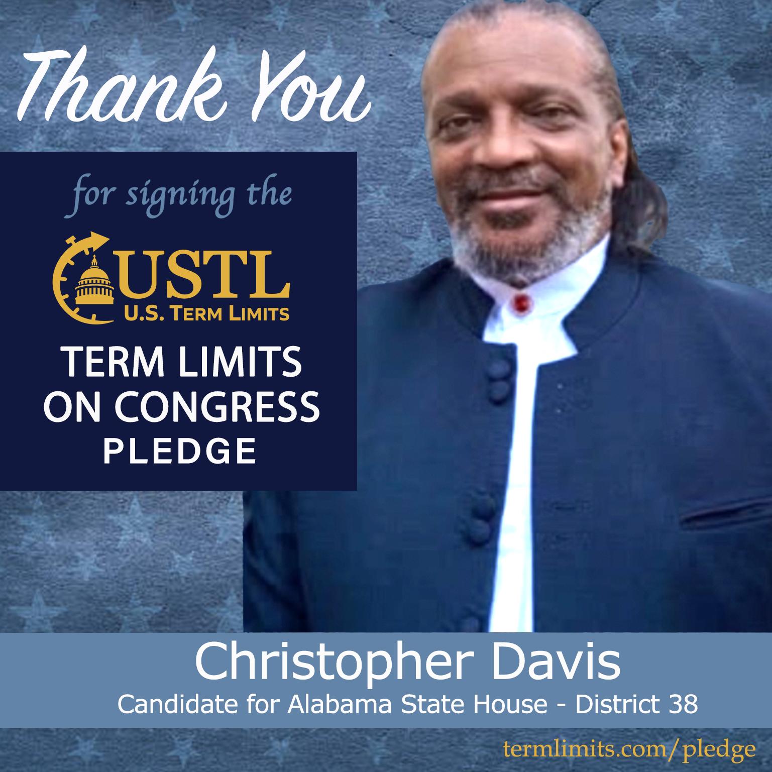 West Point, AL – U.S. Term Limits (USTL), the leader in the national, non-partisan movement to limit terms for elected officials, is gathering support from state lawmakers across the nation. Its mission is to get 34 states to apply for an amendment proposal convention specific to term limits on Congress. 2026 Alabama state house candidate, Christopher Davis (district 38), has committed support for term limits on Congress by signing the term limits convention pledge. Previously, candidate Hazel Floyd also signed the term limits pledge.