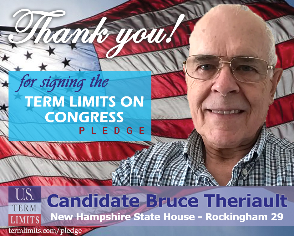 The U.S. Term Limits amendment pledge is provided to every announced candidate for federal office. It reads, “I pledge that as a member of Congress, I will cosponsor and vote for the U.S. Term Limits amendment of three (3) House terms and two (2) Senate terms and no longer limit.” The U.S. Term Limits constitutional amendment has been introduced in both the U.S. Senate by Senator Ted Cruz (SJR1) and the U.S. House by Representative Francis Rooney (HJR20).