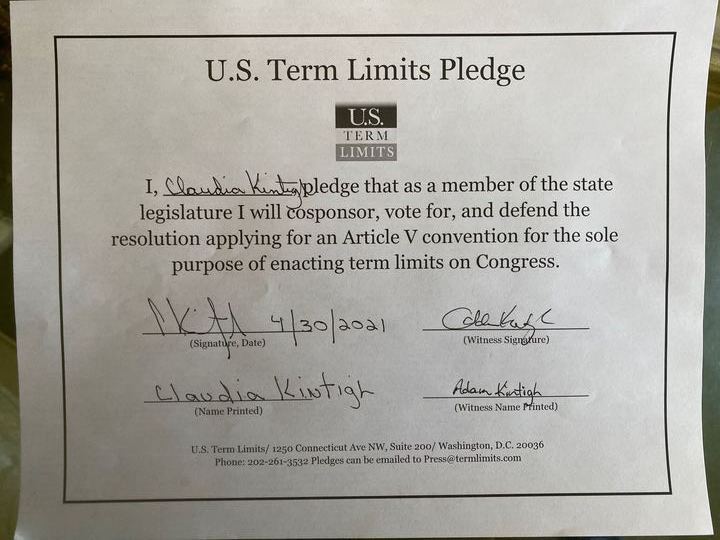 Claudia Kintigh Pledges to Support Congressional Term Limits