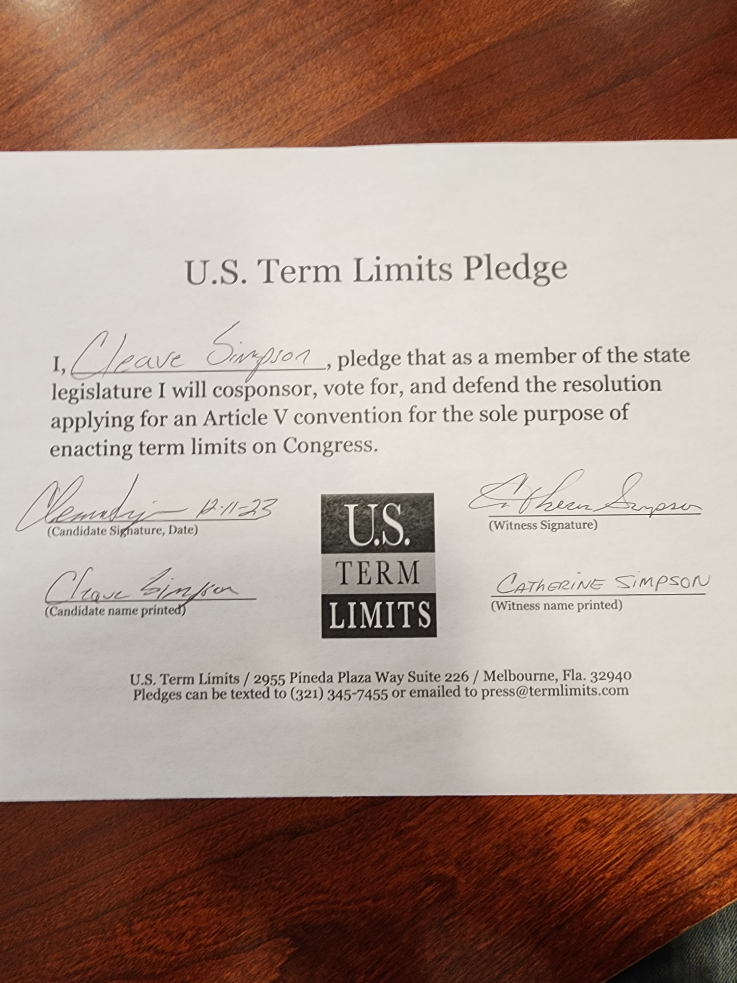 Sen. Cleave Simpson Pledges to Support Congressional Term Limits