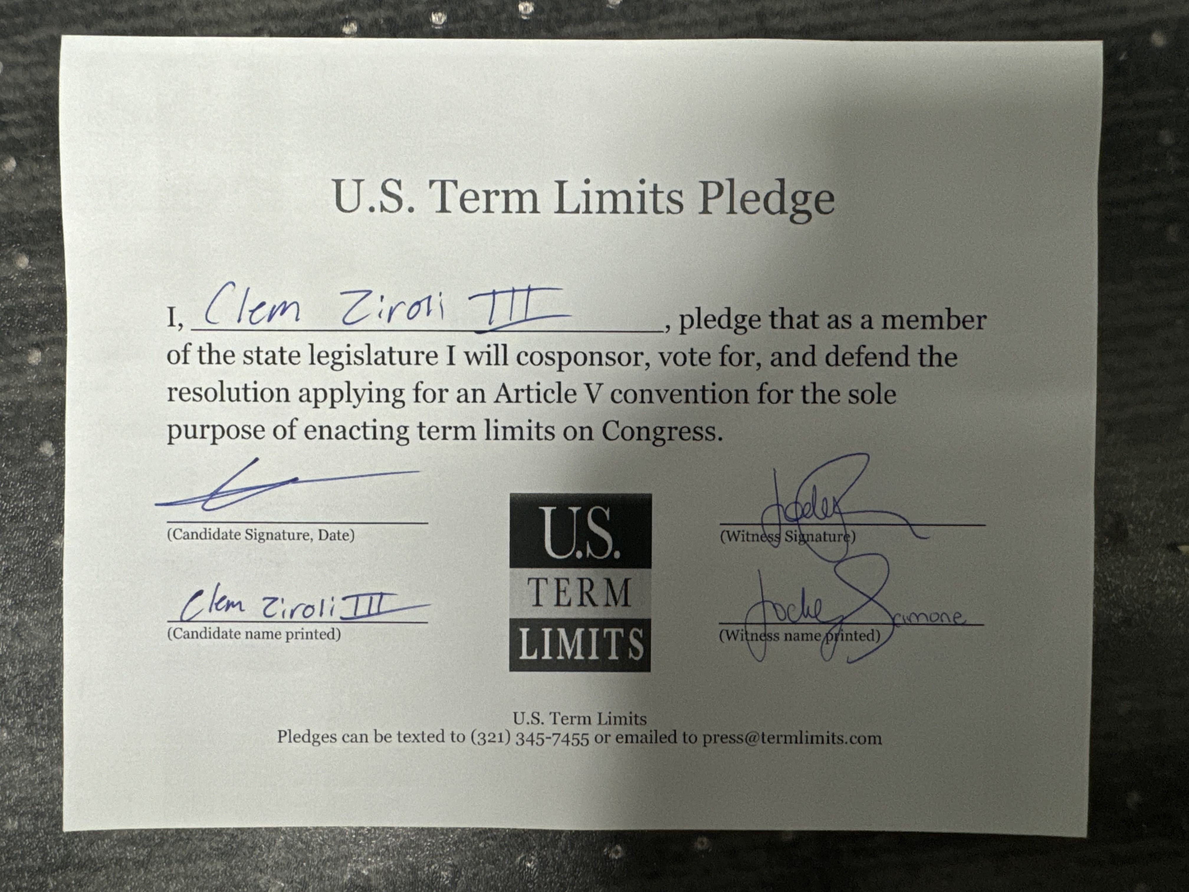 Clem Ziroli III Pledges to Support Congressional Term Limits