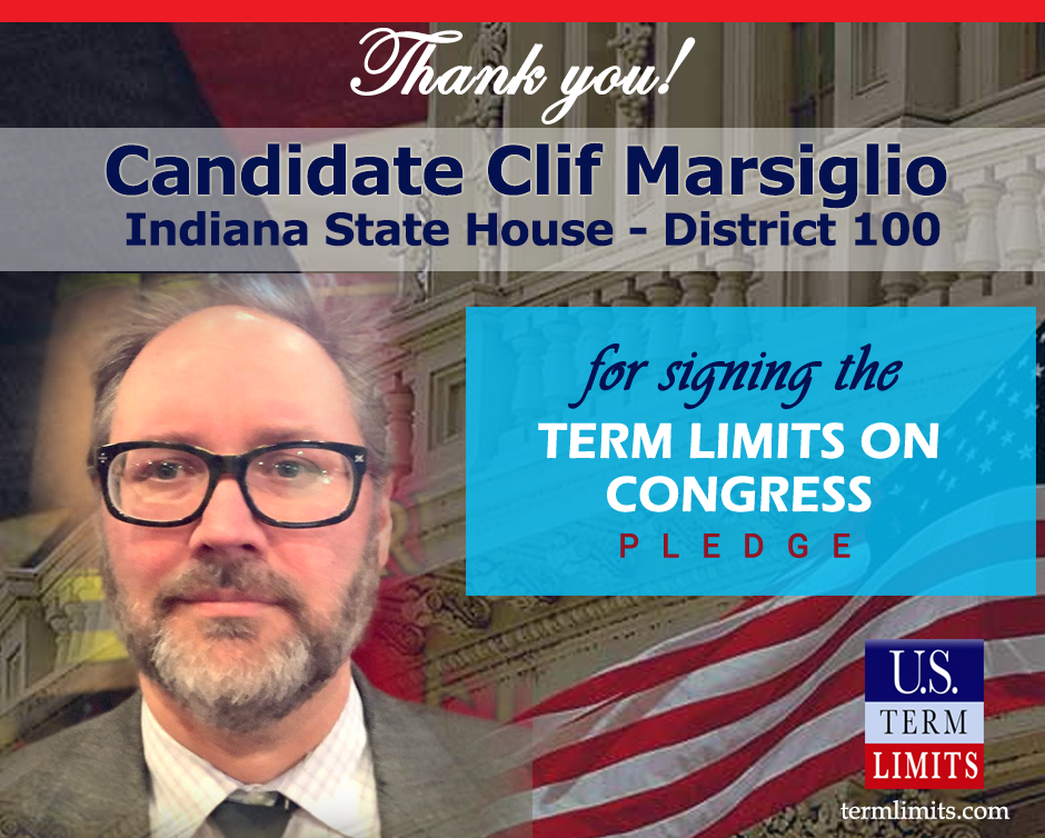 Washington, D.C. – U.S. Term Limits (USTL), the leader in the national, non-partisan movement to limit terms for elected officials, is gathering support from state lawmakers across the nation. Its mission is to get 34 states to apply for an amendment proposal convention specific to term limits on Congress. 2020 Indiana house candidate Clif Marsiglio (district 100), has committed support for term limits on Congress by signing the Term Limits Convention pledge. The primary election is scheduled for June 2, 2020.