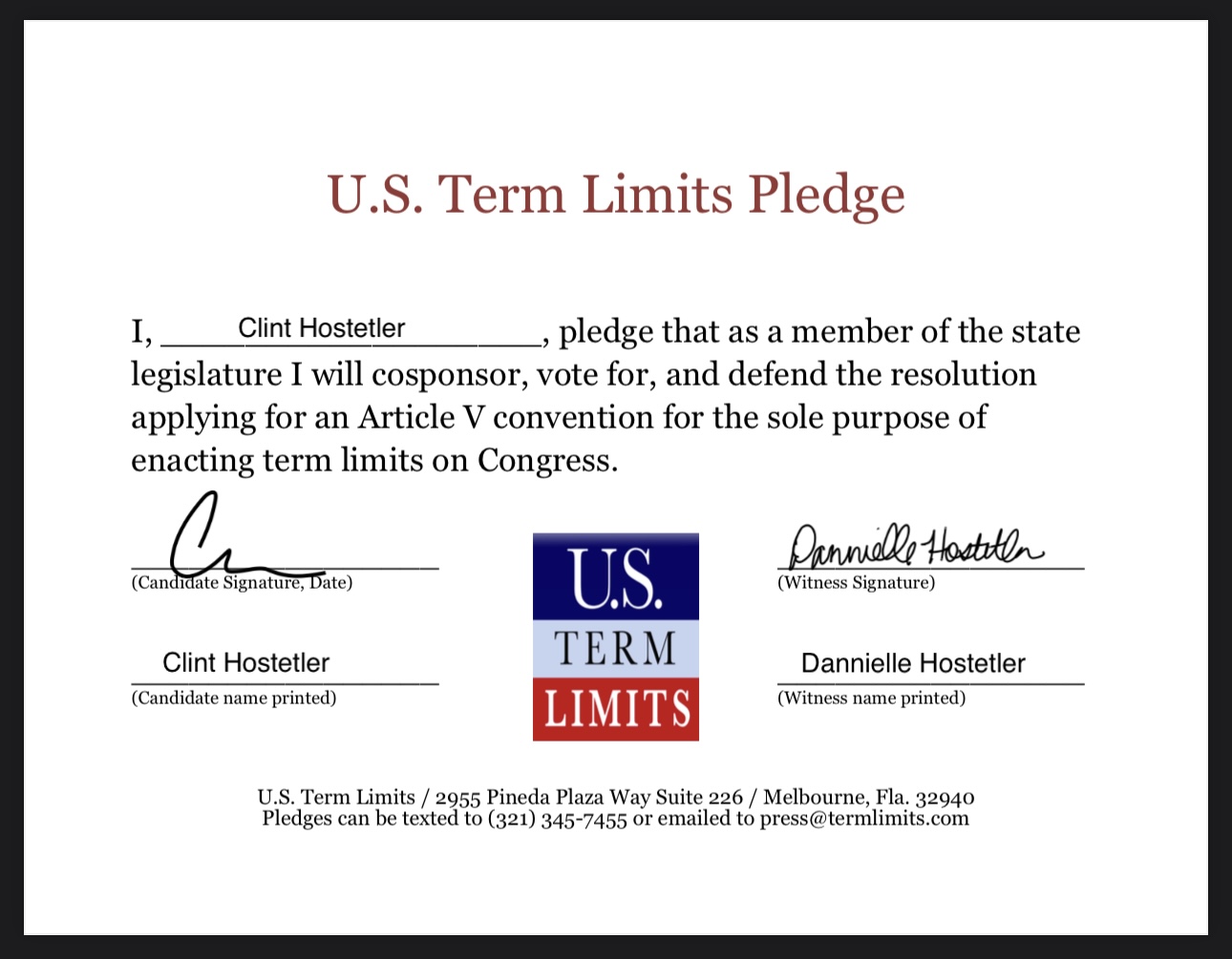 Clint Hostetler Pledges to Support Congressional Term Limits