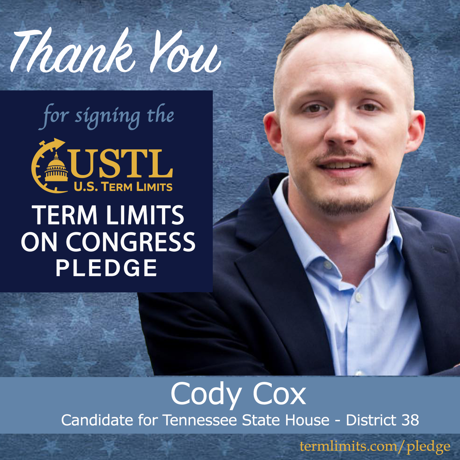 Byrdstown, TN- U.S. Term Limits (USTL), the leader in the national, non-partisan movement to limit terms for elected officials, is gathering support from state lawmakers across the nation. Its mission is to get 34 states to apply for an amendment proposal convention specific to term limits on Congress. 2026 Tennessee state house candidate, Cody Cox (district 38), has committed support for term limits on Congress by signing the term limits convention pledge. Rep. Kelly Keisling also signed.