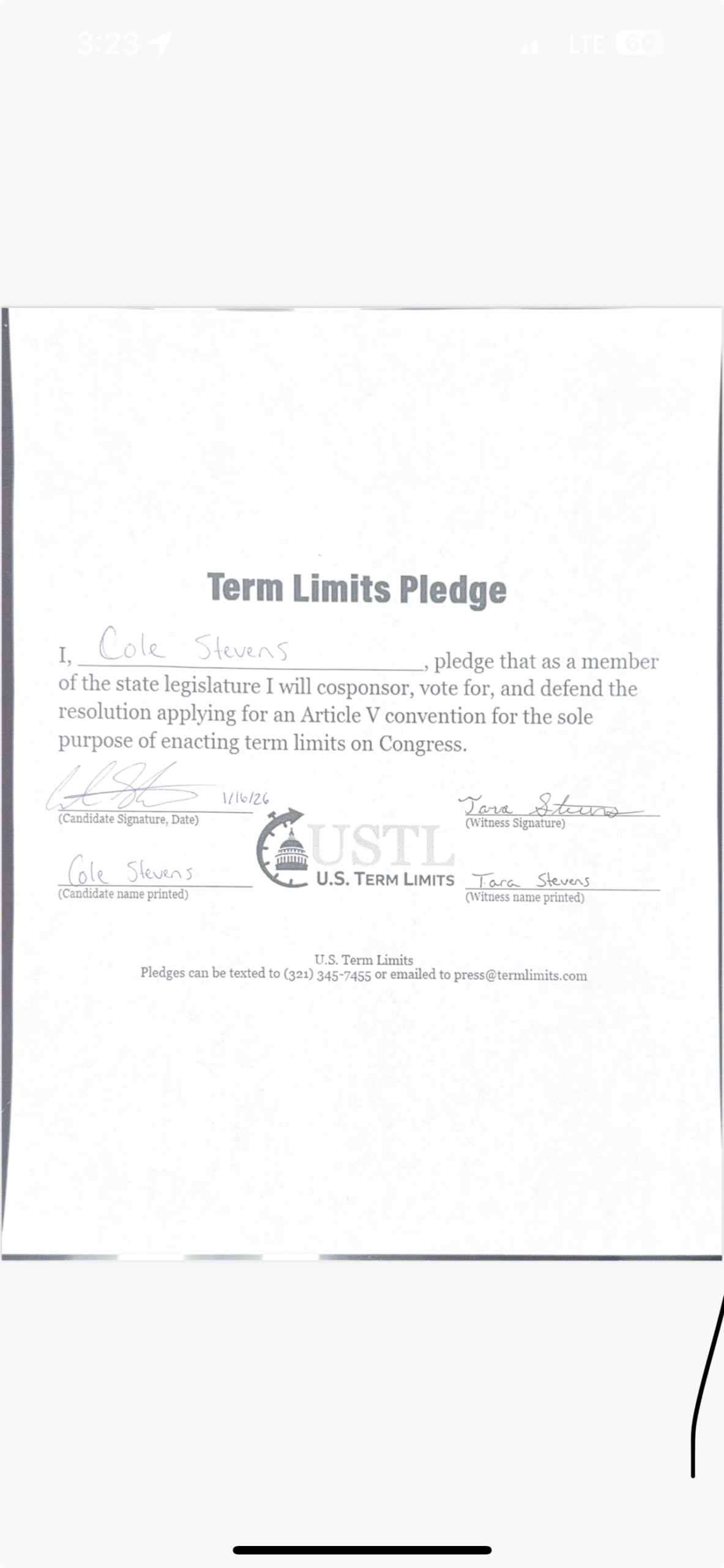 Cole Stevens Pledges to Support Congressional Term Limits