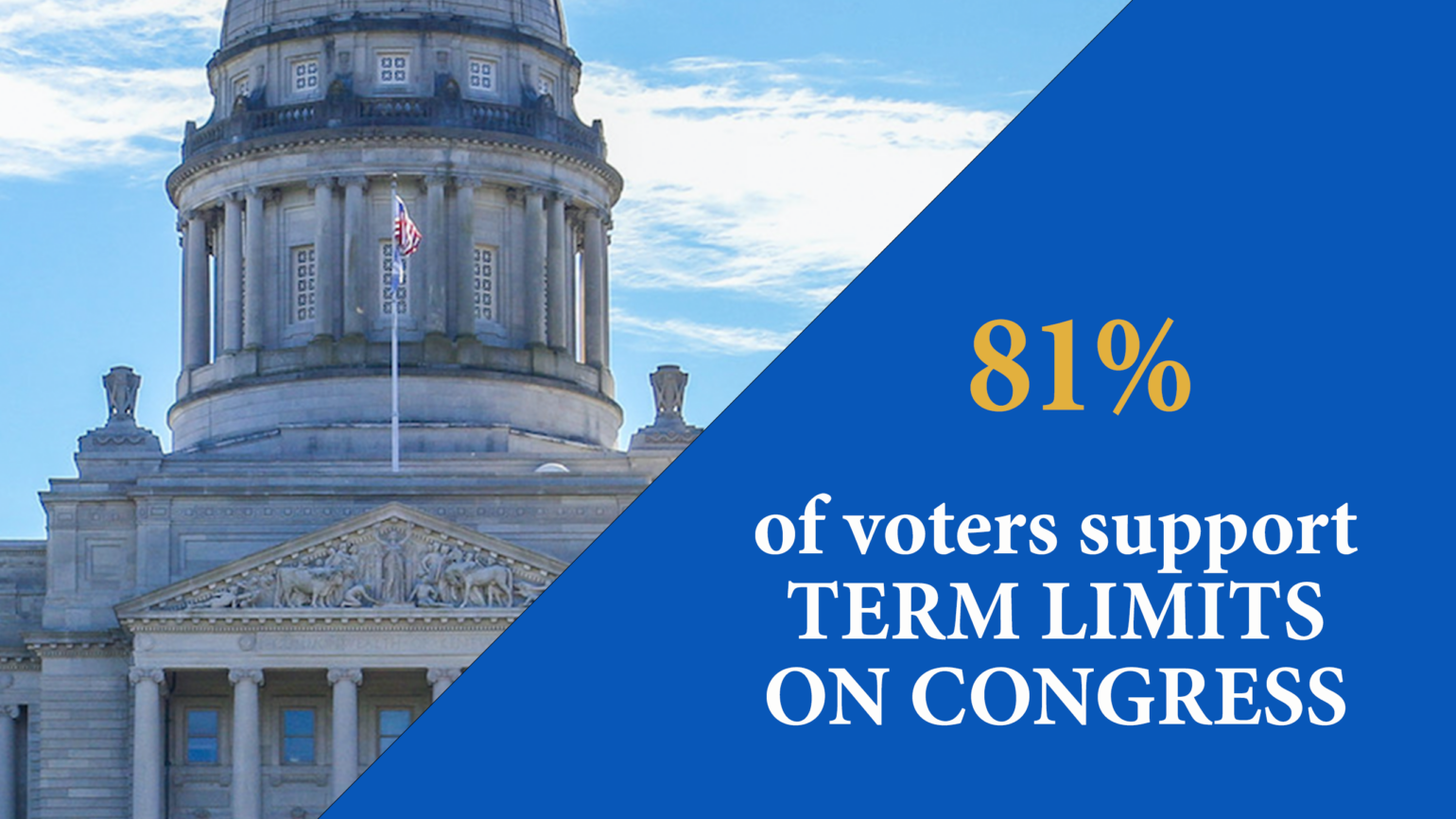 Congressional term limits have 82% support from the public, including backing from 89% of Republicans, 76% of Democrats and 83% of independent voters. It is far and away the most bipartisan issue in America. It is the issue that can bring people together and restore trust in government.